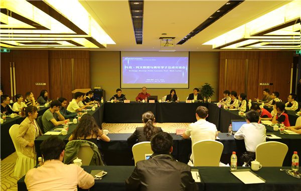 5月14日15:00,诺贝尔奖获得者Mark Levine教授与青年学子互动交流会在宜宾恒旭国际大酒店举行。宜宾学院资源与环境工程学院学生代表与诺奖专家面对面,进行了深入的互动交流。“洞察中国——清华学子宜宾行”学生代表、宜宾市一中、宜宾市三中优秀学生代表参与交流。交流会由宜宾市委人才工作局副局长覃勇主持。