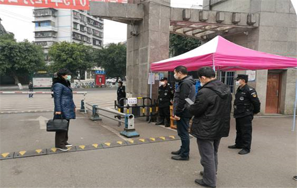 到门口检查时,王玲认真听取了保卫、国资、计财等部门主要负责人抗战疫情的情况汇报,仔细查看了校门值班值守情况。