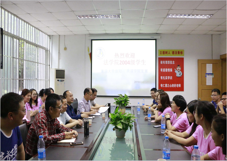 邓中文院长首先从师资队伍、教学硬件、学科建设、科研水平、人才培养等方面介绍了法学院十年来的发展变化,无论是专业发展还是学术等级等方面都得到了大幅度的提升。邓院长还对毕业生们提出了殷切的希望:希望2004级毕业生们可以从2018下半学年起为师弟师妹们开展一些学术讲座报告,与师弟师妹分享社会经验。与会的老师们在交流中表达了对毕业生们深切的感谢和欢迎。校友们也对法学院今后的工作提出一些建议,希望能够加强对应用能力的培养,促进理论与实践相结合,多开设一些与语言表达能力有关的课程,注重培养学生的应用能力。