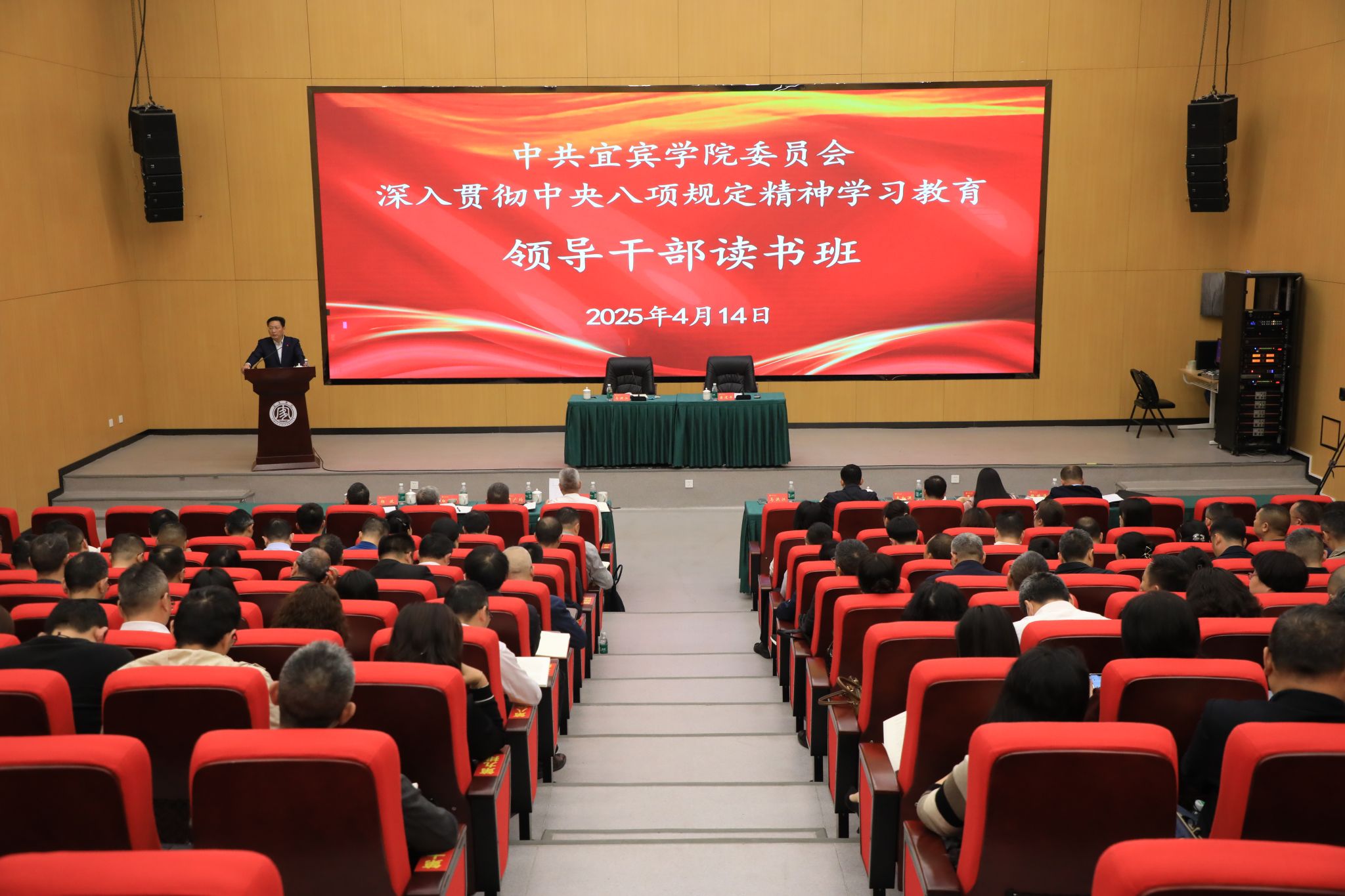 4月14日上午,宜宾学院深入贯彻中央八项规定精神学习教育领导干部读书班在临港校区求实会堂阶梯报告厅举行开班仪式。学校党委书记马洪江作动员讲话暨辅导报告。校领导、党委常委、副处级以上领导干部等出席会议。学校党委副书记蒋道平主持会议。