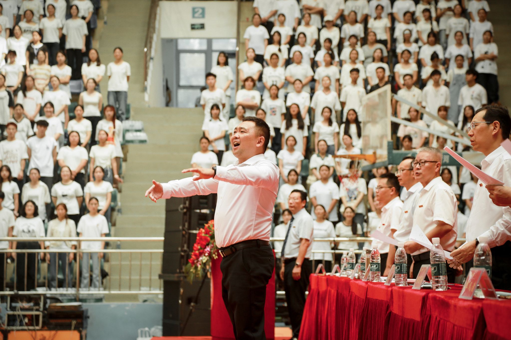 开学典礼在庄严的国歌声中拉开帷幕。