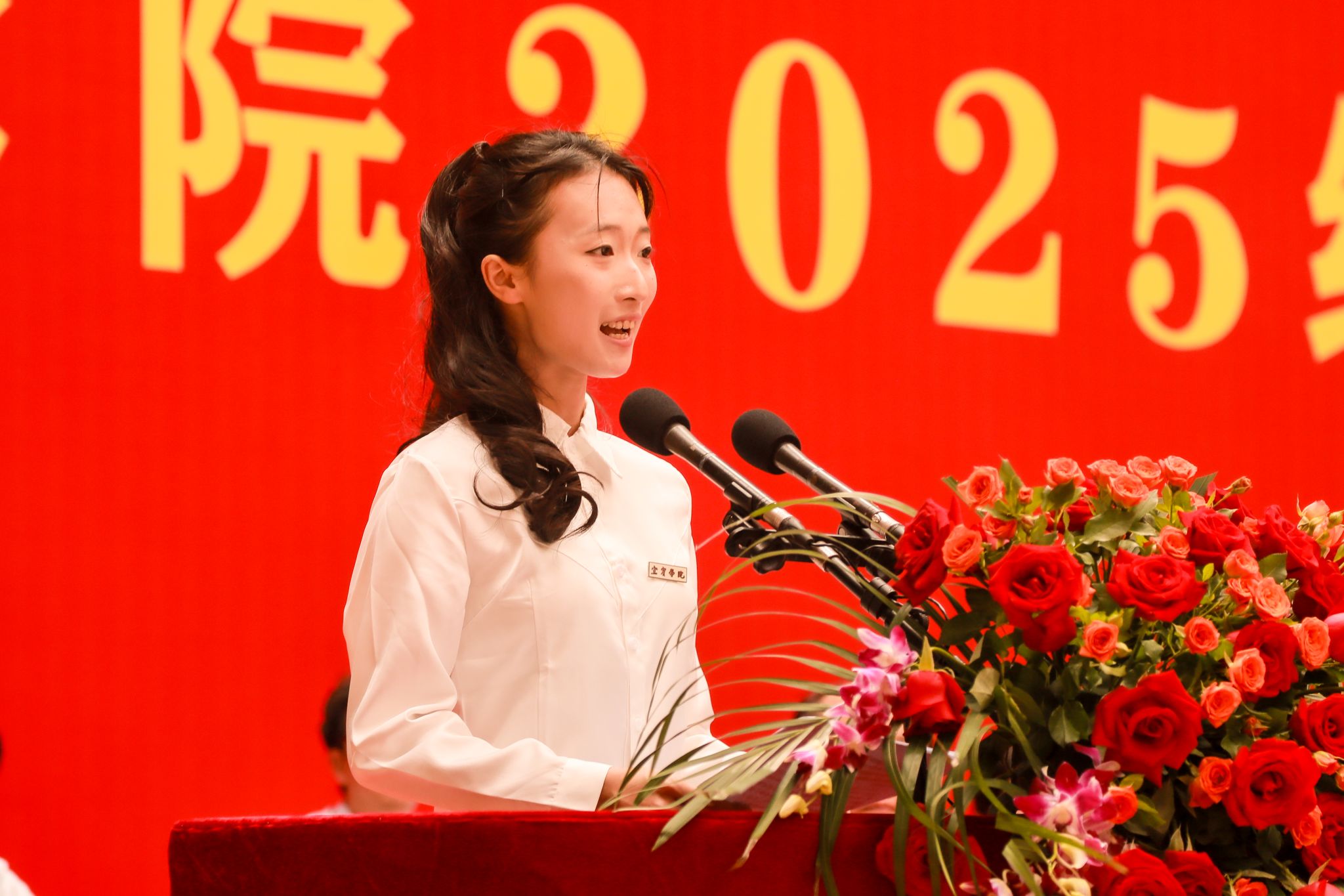 在佩戴校徽仪式中,校领导为新生代表授予校徽,全体新生郑重地将校徽佩戴于胸前,标志着他们正式成为宜宾学院的一员。校徽不仅代表着身份,更承载着“自强不息、至善致远”的宜宾学院精神和“求实、求是、开放、创新”的校训品格。