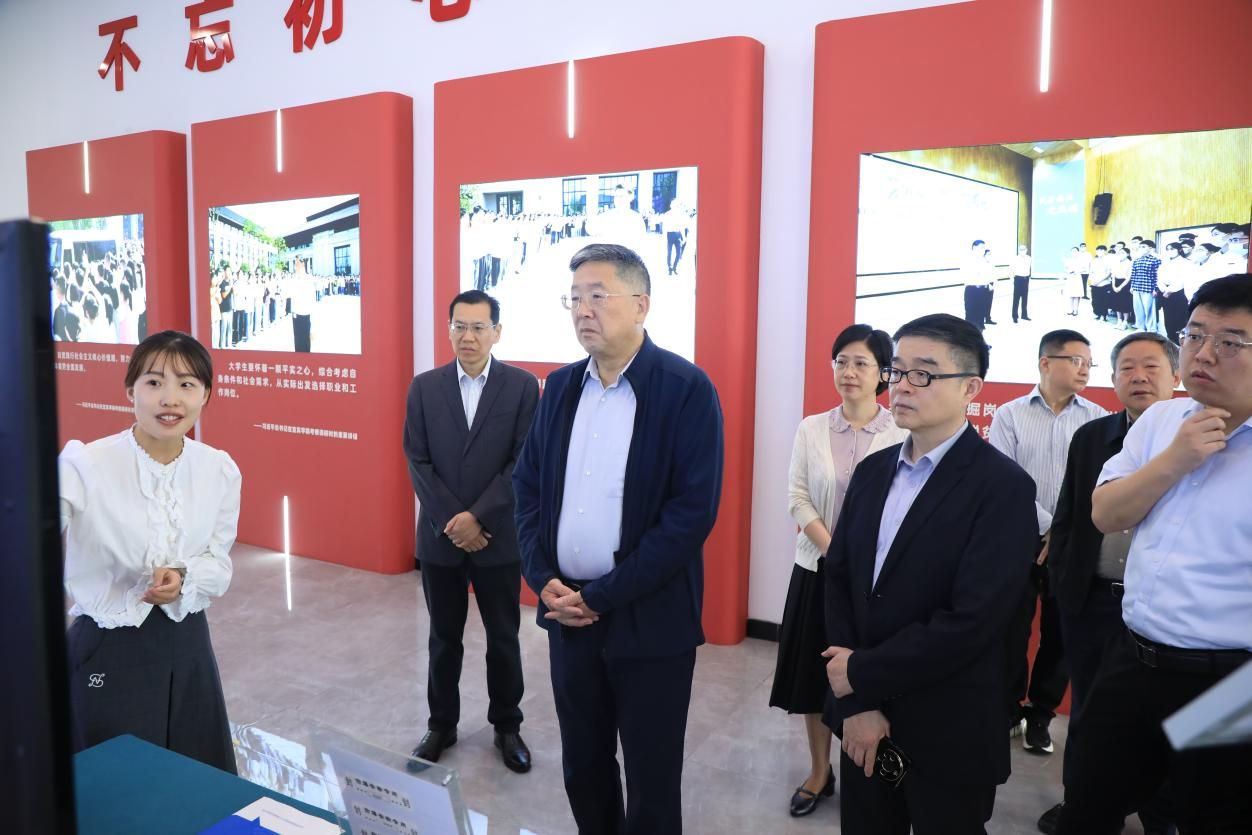 会前,调研组参观宜宾学院求实会堂,深入学习习近平总书记来校视察重要指示精神,了解学校人才培养、产教融合等相关情况,参观了毕业生就业情况展台、模拟垃圾智能分类运输机器人展台、智慧农业物联网监控系统、油樟萃取精馏装置、就业创业指导服务展台及招聘宣讲会现场。