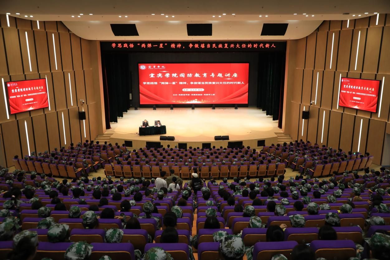 10月18日,由宜宾学院党委宣传部、党委武装部、党委学生工作部主办的国防教育专题讲座在临港校区开放会堂举行。本次讲座邀请马兰基地原政委、“两弹一星”历史研究会常务副理事长孔令才将军讲授《学思践悟“两弹一星”精神 争做堪当民族复兴大任的时代新人》,2025级800名军训学生现场聆听。讲座由宜宾学院党委常委、副院长杨强主持。