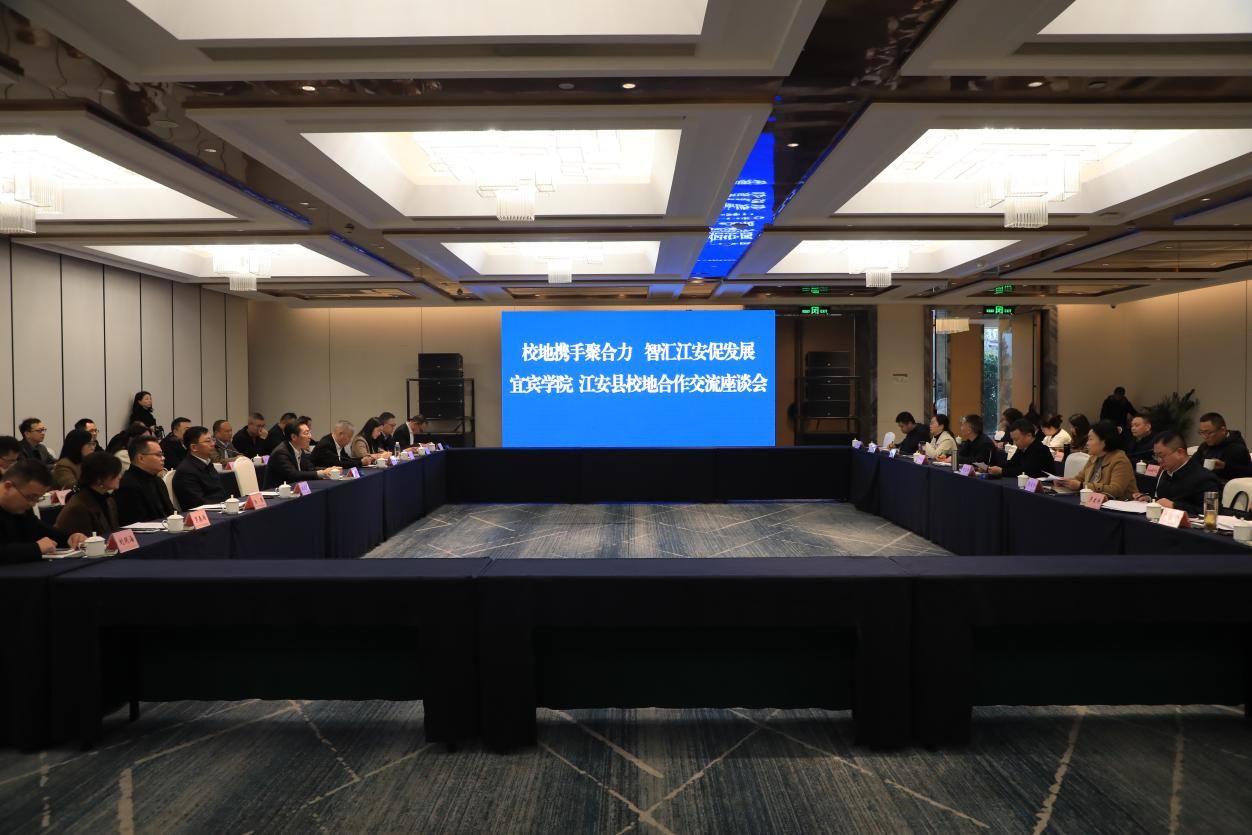 11月24日,宜宾学院与江安县校地合作交流座谈会在江安县召开。宜宾学院党委书记马洪江,省纪委监委驻宜宾学院纪检监察组组长、宜宾学院党委副书记、纪委书记徐其虎,宜宾学院党委副书记蒋道平,副院长覃凤清,党委常委、副院长杨强等校领导,县委副书记、县长何益伟,县人大常委会主任蒋龙珍,县政协主席罗世俊等县领导出席座谈会。同日,双方还共同举办了招才引智活动,200名宜宾学院优秀学生赴江安开展沉浸式参访与对接。