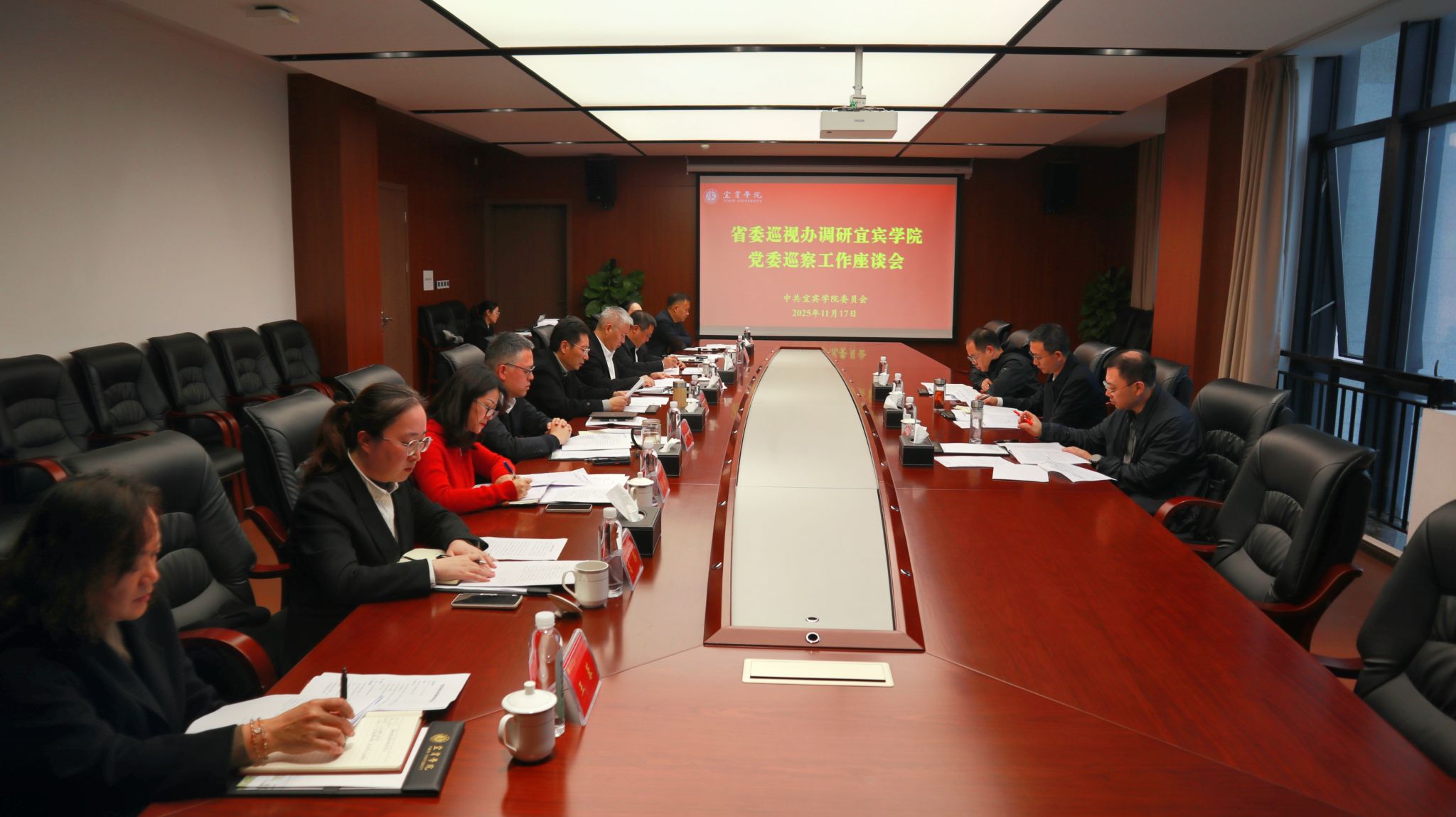 11月17日,省委巡视工作领导小组成员,省纪委常委、省委巡视办主任贾璋炜到校调研指导巡察工作,省委巡视办三处处长、二级巡视员苟玉竹,省委巡视办三处一级主任科员邓明及宜宾市委巡察工作领导小组成员,市纪委常委、市委巡察办主任杨婷陪同调研。学校党委巡察工作领导小组组长,党委书记马洪江,党委巡察工作领导小组常务副组长,省纪委监委驻校纪检监察组组长、党委副书记、纪委书记徐其虎,党委巡察工作领导小组成员,党委第三轮巡察组组长、副组长,党委巡察办有关人员参加座谈会。