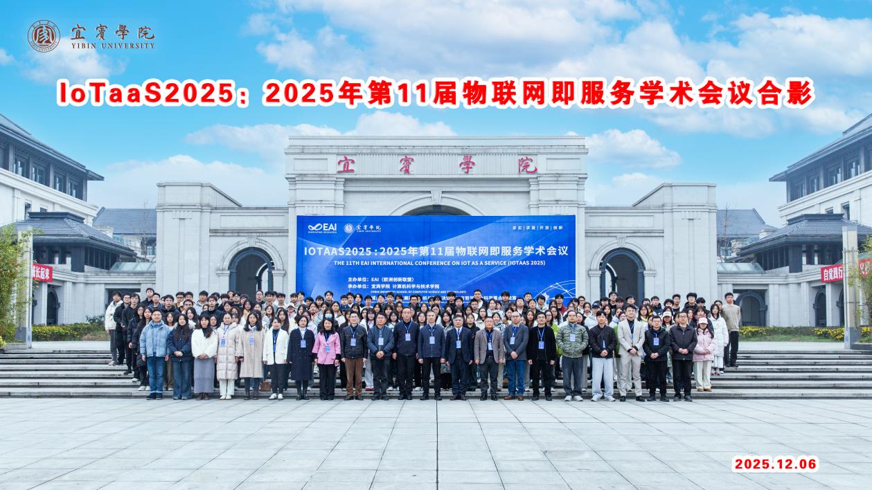 12月6日,第十一届EAI国际物联网即服务大会(IoTaaS 2025)在宜宾学院举行。本次大会以“物联网即服务:赋能未来互联世界”为主题,汇聚了全球顶尖学者、行业领袖及技术先锋,共同探讨物联网技术的前沿发展、行业应用与生态变革。会议学校由计算机科学与技术学院(人工智能学院)和城乡产业融合发展数字分析与智能决策四川省哲学社会科学重点实验室承办。