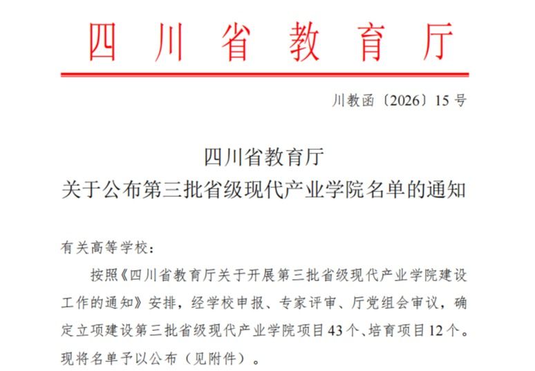 近日,四川省教育厅公布第三批省级现代产业学院名单,宜宾学院智能制造产业学院成功获批立项。至此,我校已有3个省级现代产业学院,立项数量在同类高校中位居第二,充分彰显了学校在现代产业学院建设中的显著优势和强劲实力。
