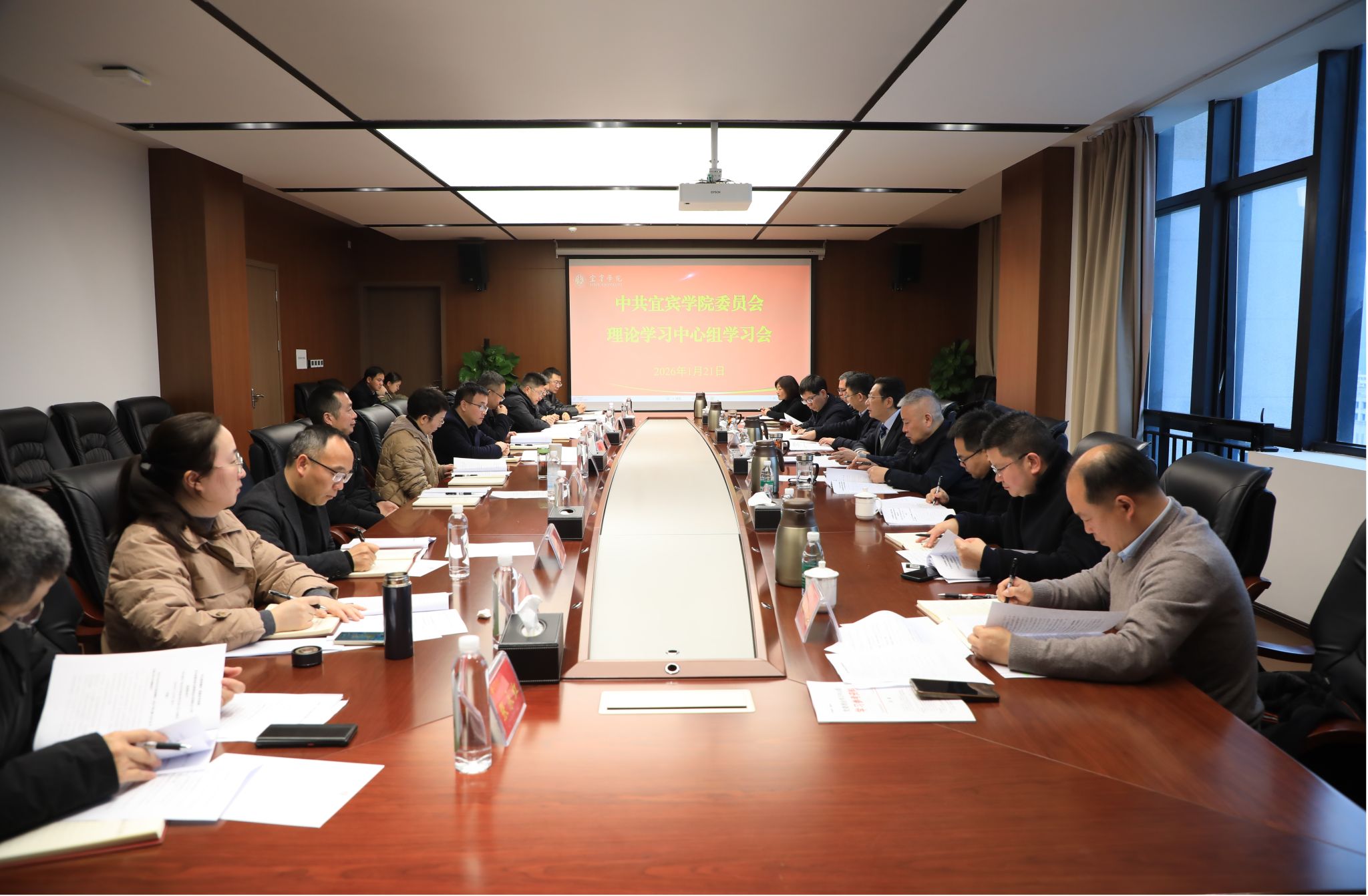 1月21日上午,宜宾学院在临港校区行政楼918会议室召开党委理论学习中心组学习会议。校领导、党委常委,党委委员,机关党委、党委巡察办、党委保卫部负责人参加学习。