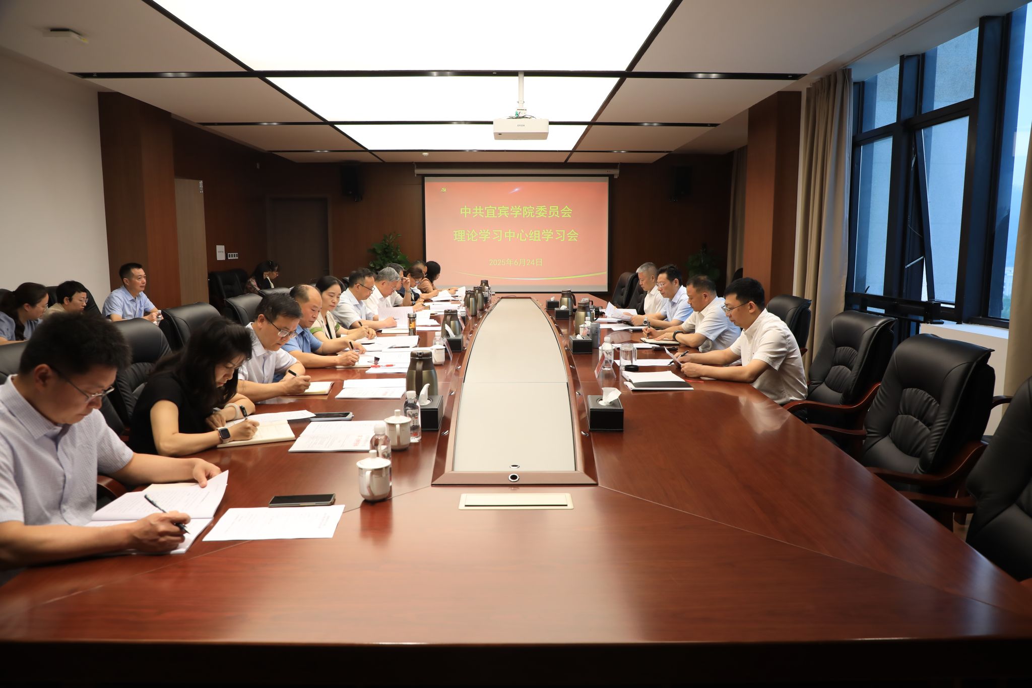 6月24日上午,宜宾学院在临港校区行政楼918会议室召开党委理论学习中心组学习会议。全体在家校领导、党委常委,党委委员,机关党委、党委巡察办、党委保卫部负责人参加学习,省委督导组相关人员列席。