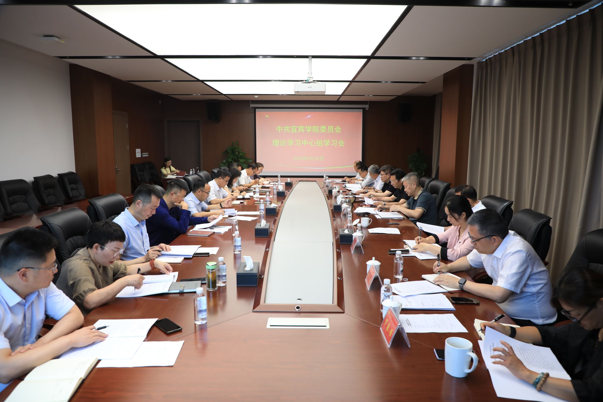 5月30日上午,宜宾学院在临港校区行政楼918会议室召开党委理论学习中心组学习会议。全体在家校领导、党委常委,党委委员,机关党委、党委巡察办、党委保卫部负责人参加学习。