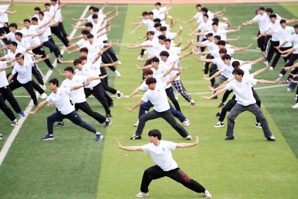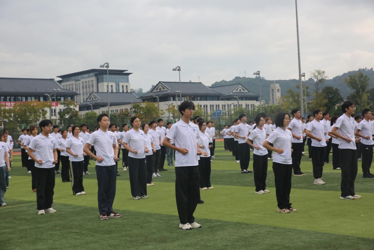 随后,全场师生共同欣赏由体育与大健康学院编排的《同心筑梦 聚力前行》团体操节目表演。团体操融合健美操、瑜伽、武术、太极等形式,在跃动与活力中诠释体育与思政的融合统一。表演分为“五育并举·育英才”“薪火相传·担使命”“砥砺奋进·新征程”三个篇章,展现了宜宾学院学子昂扬向上、锐意进取的青春风采,诠释了他们将个人理想融入时代使命,以强健体魄与坚定意志在新征程上奋勇争先、建功立业的壮志豪情。