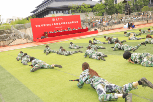 本次大会充分展示了宜院学子15天刻苦训练的成果。学员们高昂的士气、响亮的口号、整齐的步伐、严整的军姿,展示出参训学员昂扬向上的精神面貌;参训学员展示军训成果,身身迷彩展飒爽英姿,声声呼号显蓬勃青春。