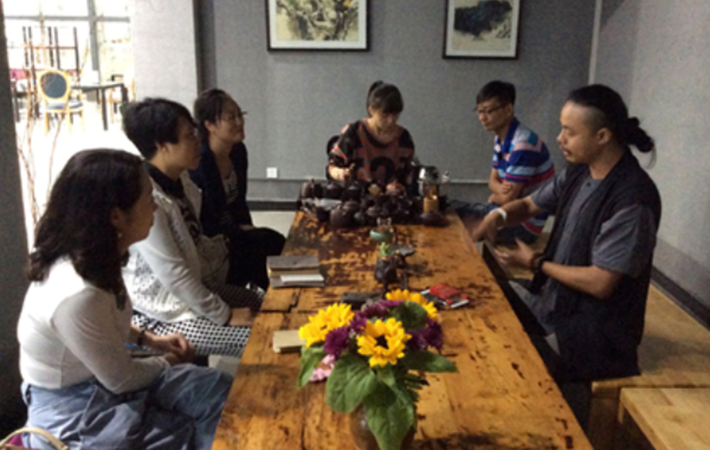 讲座结束后,徐青老师来到美艺学院的众创空间,就宜宾陶器发展现状、美艺学院僰道陶艺工作室的发展方向、美术学院工作室如何服务社会服务地方等问题与老师们进行了交流。