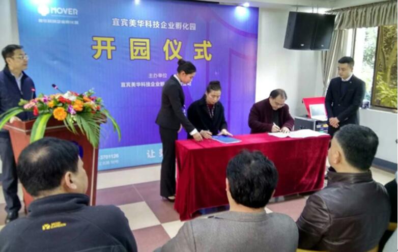 开园仪式上,宜宾市副市长张平发表讲话,对美华科技企业孵化园正式开园上线表示祝贺,王藩侯代表学校与宜宾美华科技企业孵化器有限公司董事长温政敏女士签署宜宾学院美术与艺术设计学院服装与服饰设计工作室与美华科技合作协议。