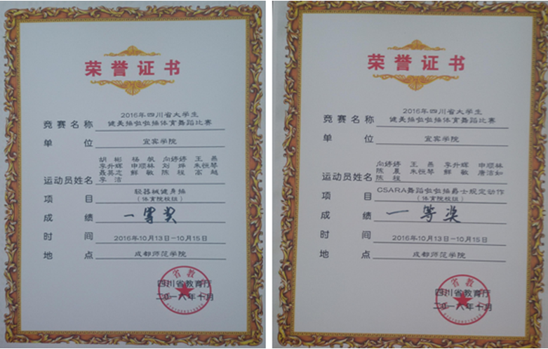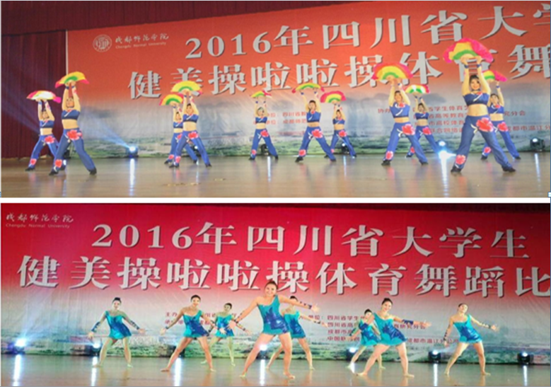 10月13-15日,由四川省教育厅主办、成都师范学院承办的2016年四川省大学生健美操啦啦操体育舞蹈比赛在成都师范学院体育馆举行,我院代表队参加了本次比赛并获得两项一等奖。