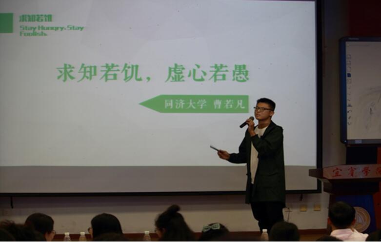 随后,6位同济学子分别进行了自我介绍,并带来了一首他们自行改编的歌曲《李庄》,让在场的师生们在悠扬的歌声中领略到了不一样的李庄,不一样的支教生活。随即,周致远、曹若凡、白梓迪3们同学分别以《不忘初心,方得始终》、《求知若饥,虚心若愚》、《关于未来规划》为题,跟大家分享了他们丰富的大学生活经历、良好的学习方法与习惯等,并希望在场每一位同学都能成为最好的自己。