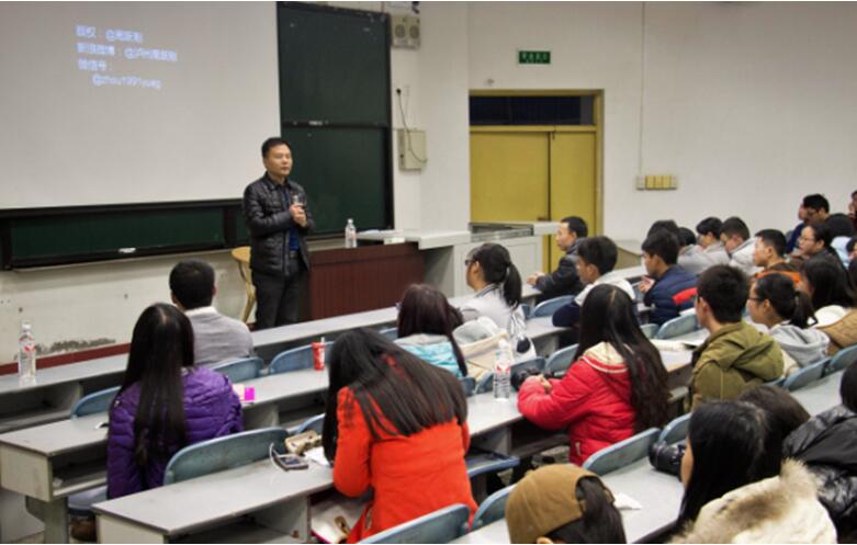 为加强大学生记者队伍建设,提升学生记者的新闻宣传能力,12月2日晚,党委宣传部在三教楼A座102教室举行2016年度大学生记者团培训会,邀请90后作家、中国诗歌学会会员、四川省作家协会会员周跃刚来校为大学生记者团成员作专题讲座。我院校报记者团、VOC广播电台、校园电视台、官方微博微信四个大学生记者团成员以及党委宣传部相关老师近200人参加了本次培训会。