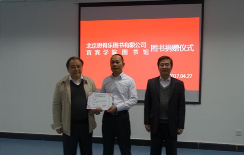 4月27日上午,北京思得乐图书有限公司向宜宾学院图书馆捐赠图书仪式在图书馆五楼电子阅览室隆重举行,思得乐图书有限公司总经理江均亮、宜宾学院副院长王藩侯出席捐赠仪式,图书馆科以上干部及文献信息服务部同志参加了捐赠仪式。