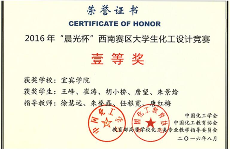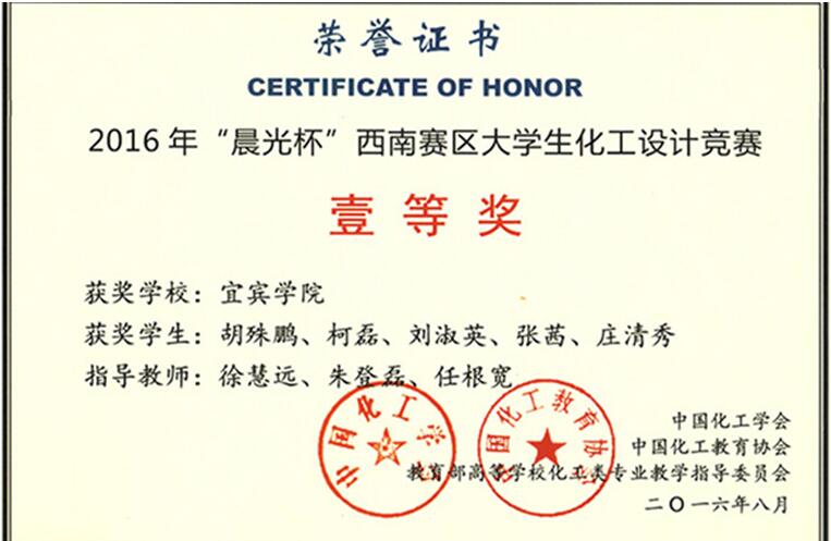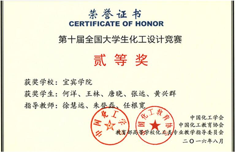 日前,从“东华科技—陕鼓杯”第十届全国大学生化工设计竞赛场传来喜讯,由宜宾学院化学与化工学院组织的四支参赛团队提交的设计作品,获全国总决赛二等奖1项,西南赛区一等奖3项的好成绩。