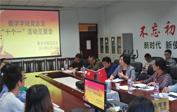 会议由数学学院党总支书记杨惠敏主持。她表示,数学学院党总支将认真履职尽职,积极协调各方,充分发挥服务职能,建立活动联系台账,确保“十个一”活动的顺利开展。