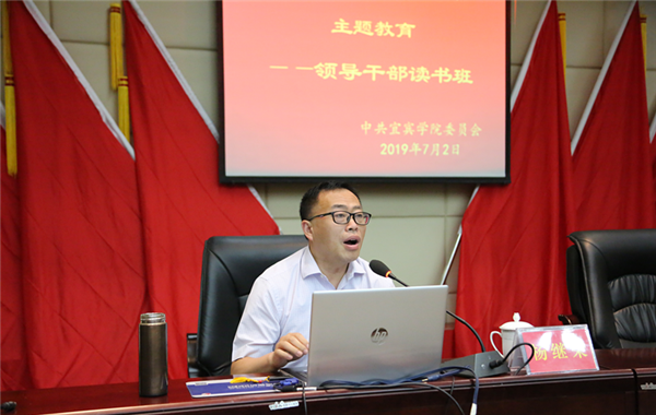 为扎实开展“不忘初心、牢记使命”主题教育,推动广大党员干部对习近平新时代中国特色社会主义思想全面系统学、深入思考学、联系实际学,7月2日上午,宜宾学院领导干部读书班在图书馆三会议室开班,邀请省委党校杨继荣教授作专题报告,解读《习近平新时代中国特色社会主义思想学习纲要》。党委常委、全校处科级干部、党支部书记聆听了报告。报告由党委副书记鲁飞主持。