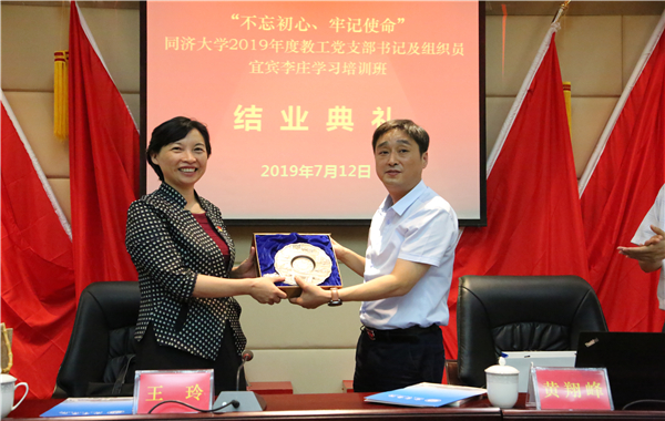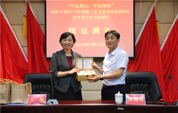 7月9日,同济大学党委书记方守恩率150多名党务干部来到同济的“第二故乡”宜宾,开展为期三天的“不忘初心、牢记使命”主题培训。7月12日上午,培训班结业典礼在宜宾学院图书馆三会议室举行,同济大学党委常委、党委组织部长黄翔峰,党委组织部副部长王峻,我校党委副书记、院长王玲,党委常委、副院长周广均出席结业典礼。典礼由同济大学党委组织部副部长王峻主持,同济大学教工党支部书记及组织员等党务干部参加典礼。