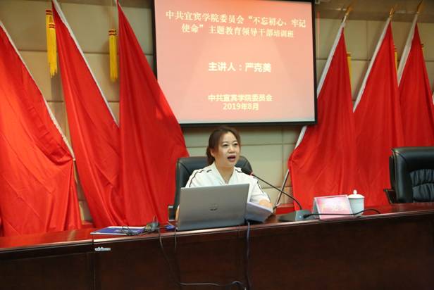 为扎实开展“不忘初心、牢记使命”主题教育,抓好我校领导干部教育工作,8月28日下午,“不忘初心、牢记使命”主题教育领导干部培训班在图书馆三会议举行,党的十八大、十九大代表、第九届全国“人民满意的公务员”获得者,宜宾学院杰出校友严克美同志做专题报告。党委常委、全校处科级干部聆听了报告。报告由党委副书记鲁飞主持。