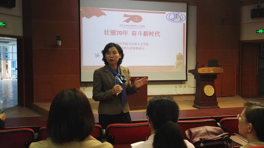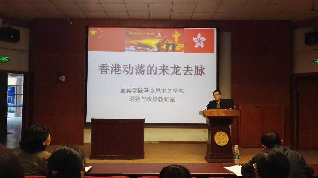 马克思主义学院“形势与政策”课程教研室主任竭仁贵博士就本期形势与政策课教学内容做了主题发言。竭仁贵结合时政要点与热点,着重讲了四个专题:一是“香港动荡的来龙去脉”,二是“壮丽70年 奋斗新时代”,三是“中国经济行稳致远”,四是“加强党的政治建设”。