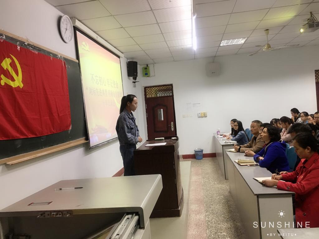 分享交流会采用学生党员、发展对象、入党积极分子轮流上台以朗诵先进事迹、讲故事、播放视频的方式分享了焦裕禄、钟扬、严克美、黄文秀、其美多吉、黄大年、张富清、周永开、李保国的感人事迹:人民的好公仆、干部的好榜样焦裕禄为亿万人们心中筑起一座永不磨灭的丰碑;深藏功名60载,坚守初心,不改本色的老英雄张富清;心有大我,至诚报国的物理学家黄大年;在脱贫攻坚一线倾情投入,奉献自我,用美好青春诠释了共产党人的初心使命,谱写了新时代的青春之歌的黄文秀;坚守29年雪线邮路的忠诚信使其美多吉……这些先进人物都是每个时代的标志,一个个故事催人泪下,他们忠于党、忠于人民、坚守初心、不改本色、勤勤恳恳、爱岗敬业的精神值得我们永远敬仰和学习。