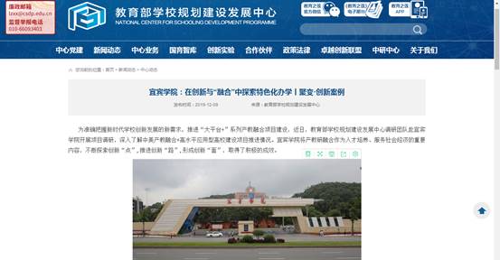 12月9日,教育部学校规划建设发展中心官方网站以《宜宾学院:在创新与“融合”中探索特色化办学丨聚变·创新案例》为题,专题报道我校产教研融方面不断探索创新所取得的积极成效。