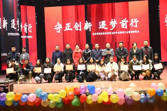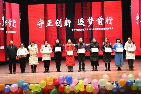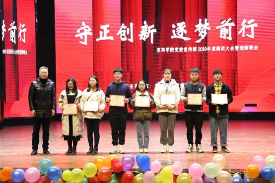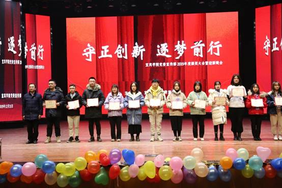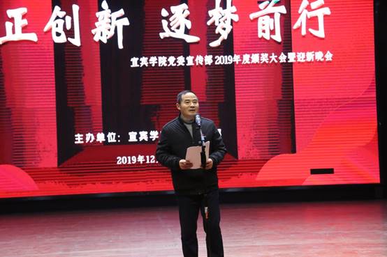 又是一年寒梅开,岁序常易,华章日新。为进一步开创学校新闻宣传工作新局面,12月31日晚19:00,宜宾学院党委宣传部以“守正创新 逐梦前行”为主题召开2019年度颁奖大会。宜宾学院党委副书记鲁飞出席并致辞,党委常委、宣传统战部长李成文、宣传先进集体、先进个人、相关新闻宣传工作负责人、通讯员及学生记者团成员参加大会。