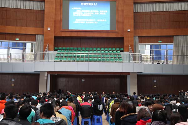 2013年11月13日下午3点,我校和宜宾市交警支队交警三大队在体育馆共同举行大学生交通安全法律法规教育大会。全校各二级学院学生3000余人参加了此次交通法规教育大会。