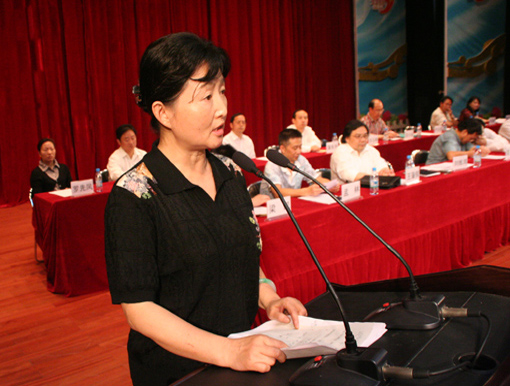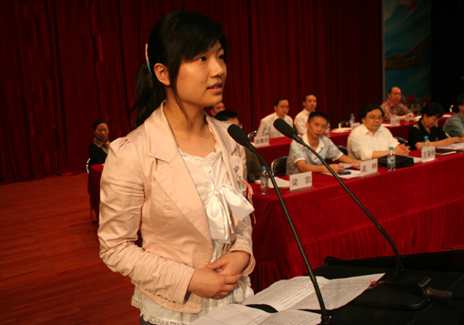 图七:政管系06级2班学生韩建梅代表“学校优秀学生奖学金” 获得者发言
