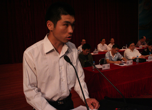 图六:经管系06级1班学生张玉宾代表“国家励志奖学金”获得者发言