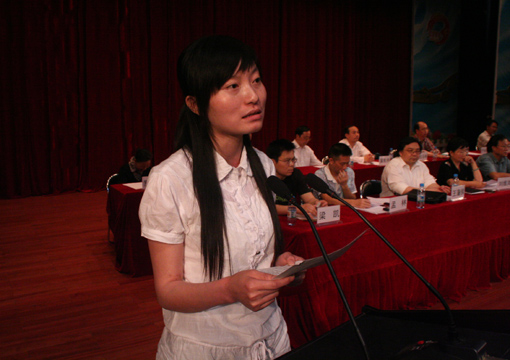 图五:中文系06级4班学生蒋瑜代表“国家奖学金”获得者发言