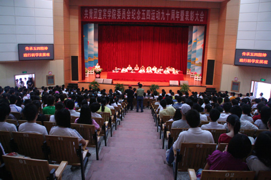 下午,由共青团宜宾学院委员会主办的纪念五四运动九十周年暨表彰大会在三平台演播厅隆重举行。宜宾学院党委书记屈川教授、院长汪明义教授、党委副书记刘维鸿教授,纪委书记郭洪亮教授、副院长毛克强教授、王藩侯教授、孟林教授、党委委员人事处处长华曦教授等领导及相关部门领导出席了本次大会。