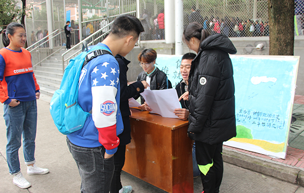 “就业协议”、“推荐表”等是当今大学生常面对的事,“工会组织”、加入工会的权利与义务等是毕业生就业后必须面对的问题。即将走上工作岗位的同学如何适应社会,怎样处理好这些问题,体育学院的同学们带上知识宣传单、知识问卷单以及宣传展板,在二平台风雨篮球场旁开展有关宣传活动。