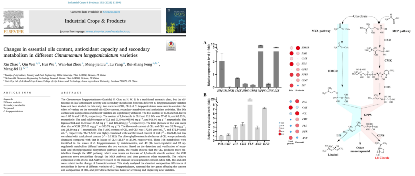 近日,宜宾学院农林与食品工程学部教师、油樟中心研究人员赵鑫博士的学术论文《油樟不同株系精油含量、抗氧化能力及次生代谢的变化》在国际顶级期刊《工业作物和产品》在线发表。该期刊为农艺学领域的国际顶级期刊,致力工业(定义为非食品/非饲料)作物和产品的学术和工业相关领域的研究。